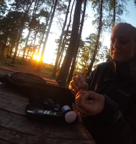 Vi njöt dock av att bo i stugan lite isolerat, plantera, kratta löv och bara njöt av livet, vi åkte till Nordkoster och campade. Som också var en utmaning i sig för diabetesen. Det blev att ta blodsocker på traditionellt vis då vi inte hade så mycket batteri i telefon och kunde ha G6 igång. Det var grillkorv, pasta och ketchup i 5 dagar. Vi vandrade långt varje dag, men vi lade oss tidigt och fick vårt sömnbehov tillbaka i vårt lilla tält.