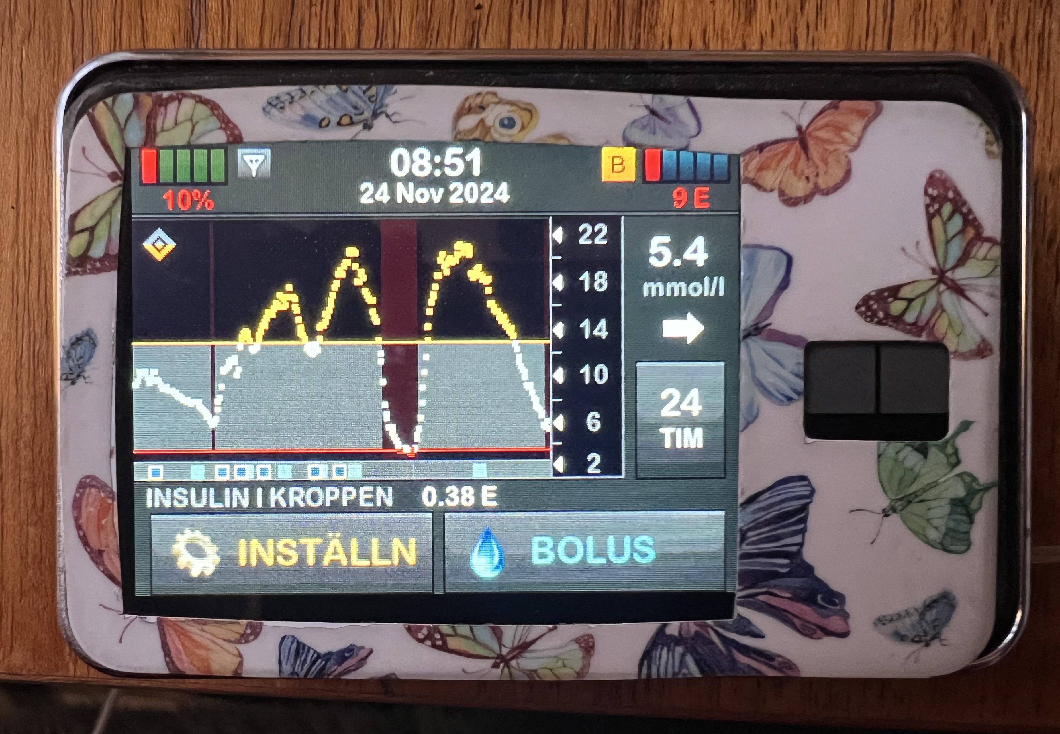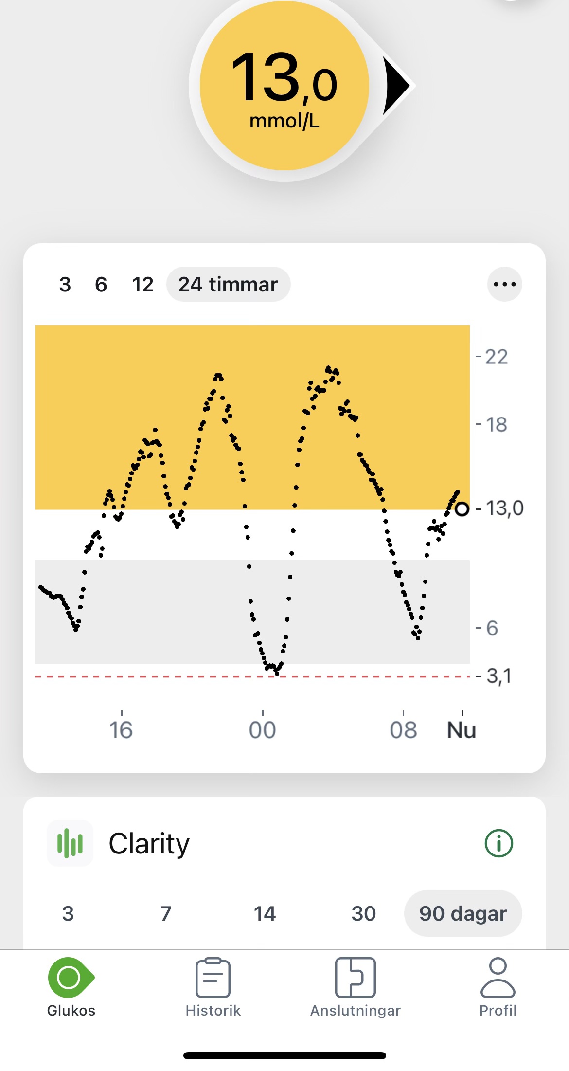 Man lär sig aldrig… Jag har haft en riktigt tuff dag med blodsockret som går upp och ner, upp och ner. Trots att jag har ätit bra, tränat och gjort allt rätt, känns dagen som en berg- och dalbana. Och så kommer kylan… Nu är det iskallt ute, och jag glömmer att justera mina doser. Jag måste öka mina måltidsdoser med två enheter för att kompensera för kylan, och jag hittar på kolhydrater jag normalt inte äter bara för att få blodsockret att stabilisera sig.